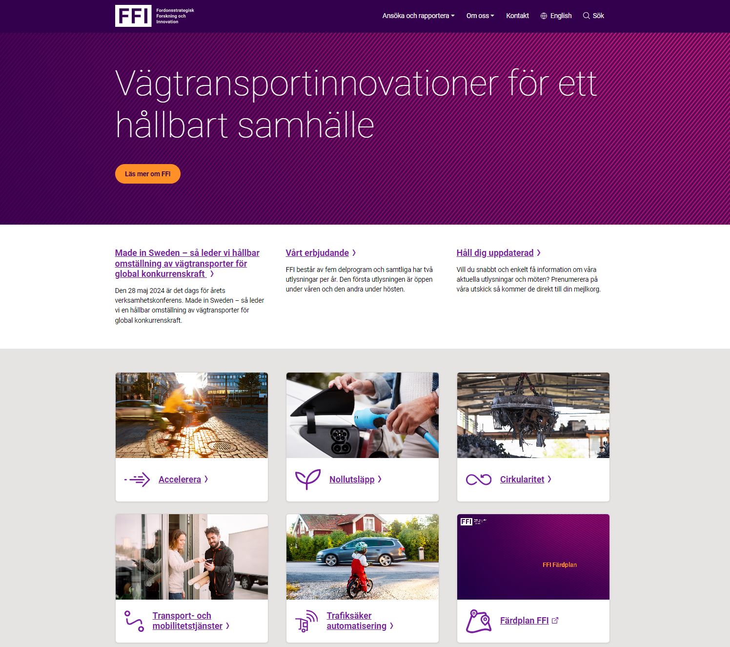 FFI, Strategic Vehicleresearch and Innovation, is a collaborative program between the state and the automotive industry that since 2009 finances research and innovation in road transport. From January 2024, FFI has a new website - ffisweden.se
